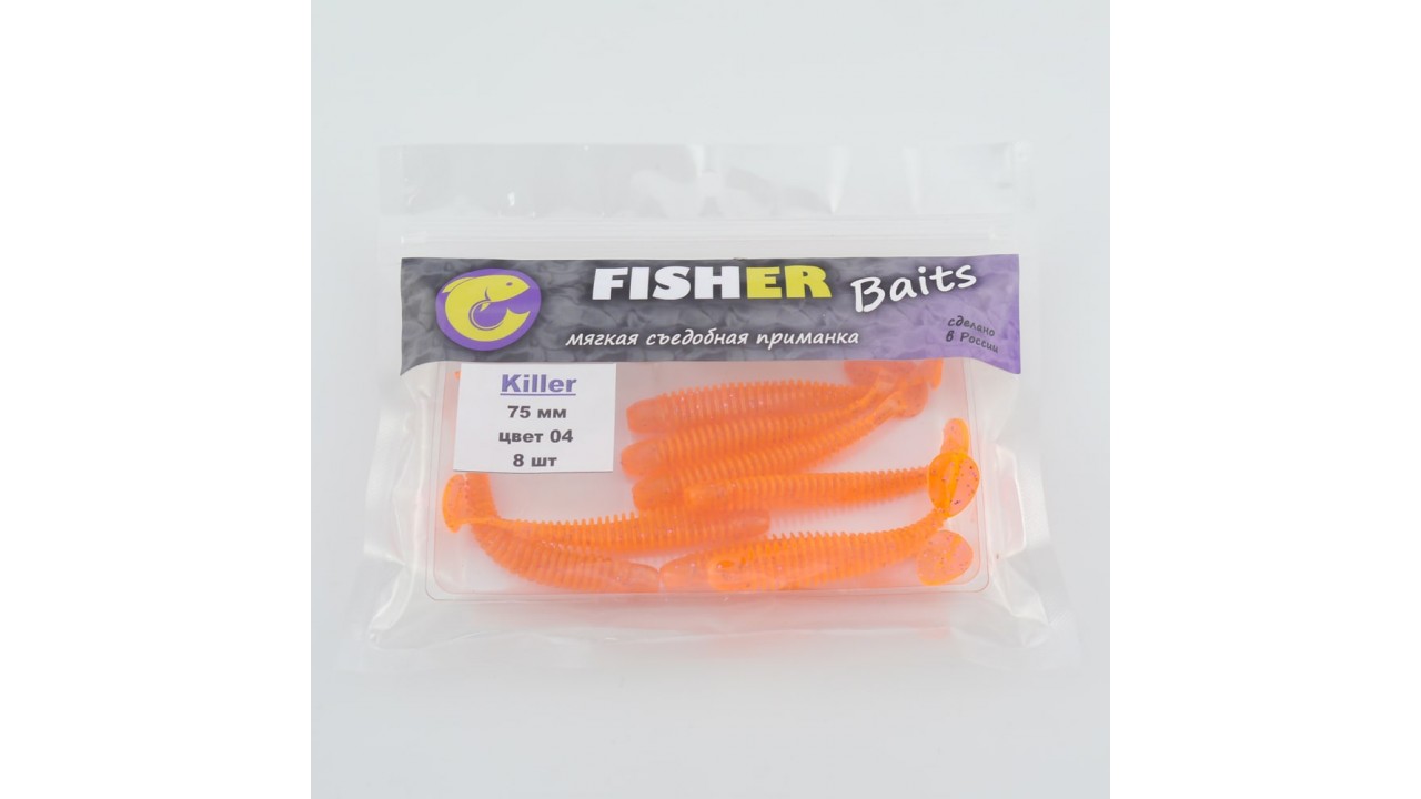 Виброхвост FISHER BAITS Killer 75мм цвет 04 (уп. 8шт)