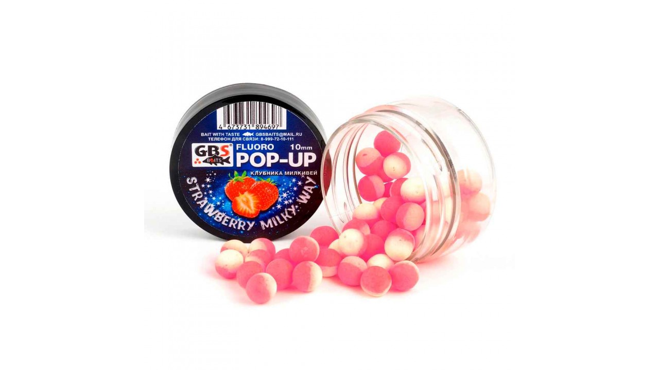Бойлы GBS Baits Pop-up плавающие 10мм 40гр (уп. 6 шт) Milky Way Клубника