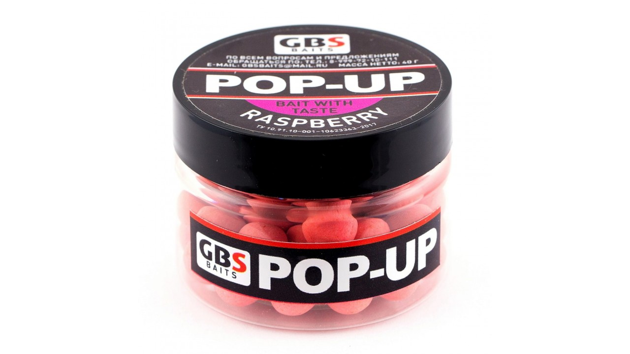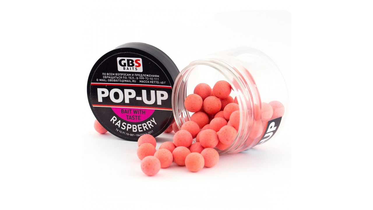 Бойлы GBS Baits Pop-up плавающие 10мм 40гр (уп. 6 шт) Raspberry Малина