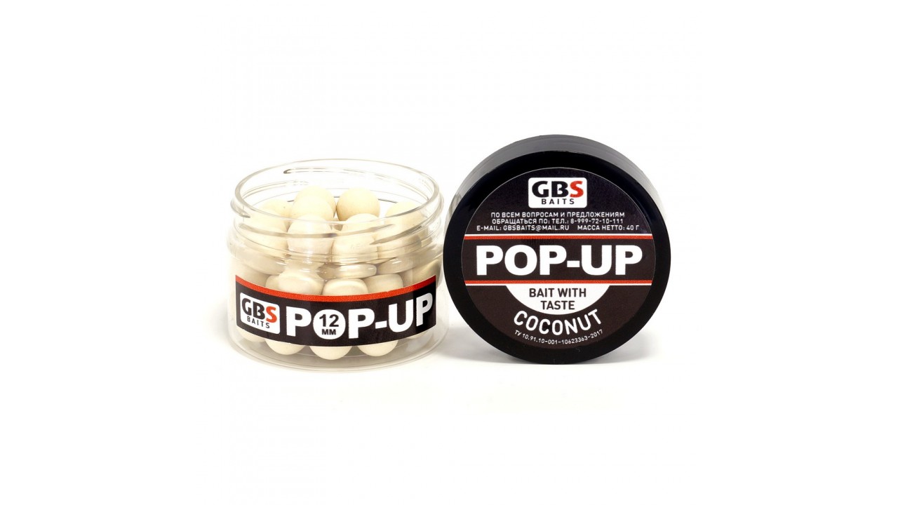 Бойлы GBS Baits Pop-up плавающие 12мм 40гр (уп. 6 шт) Coconut Кокос