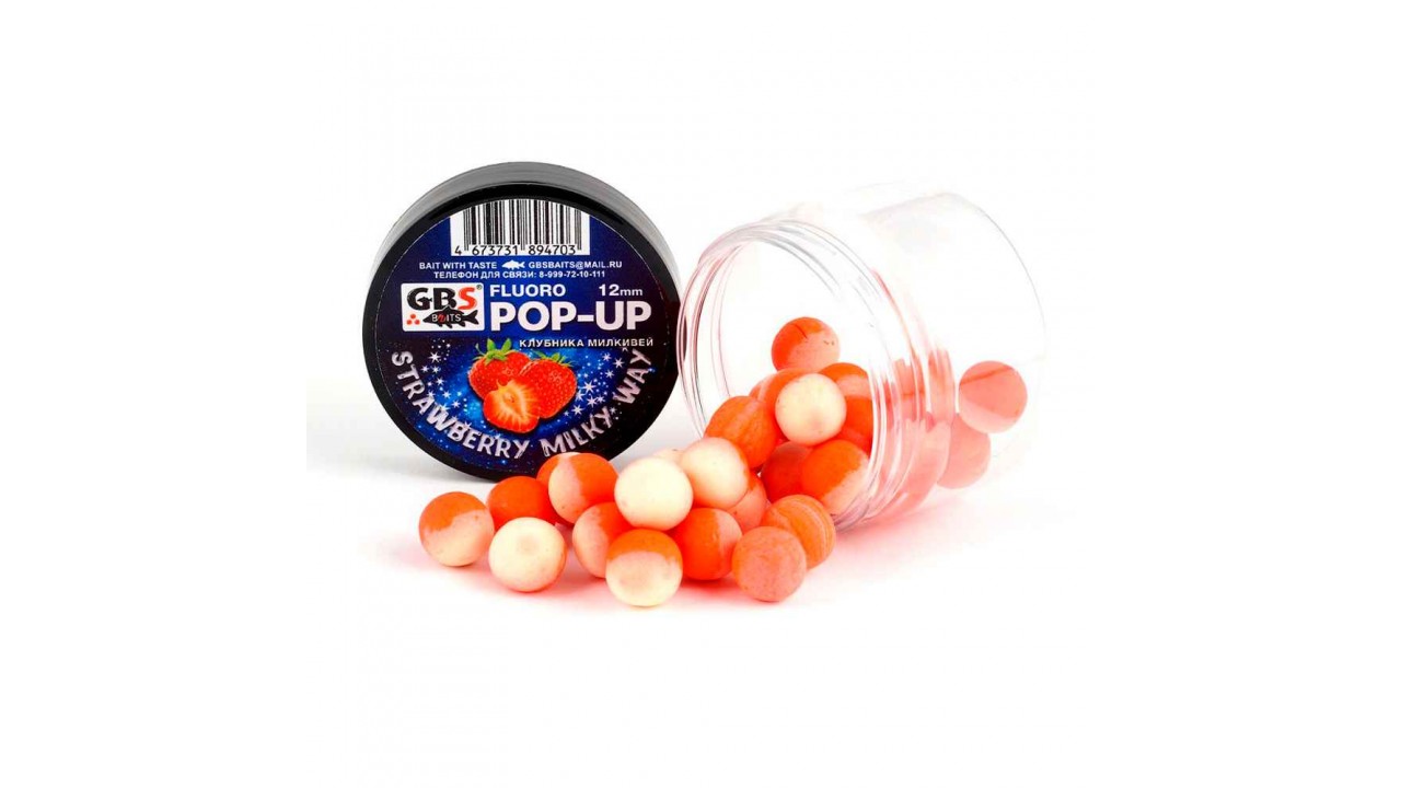 Бойлы GBS Baits Pop-up плавающие 12мм 40гр (уп. 6 шт) Milky Way-Клубника