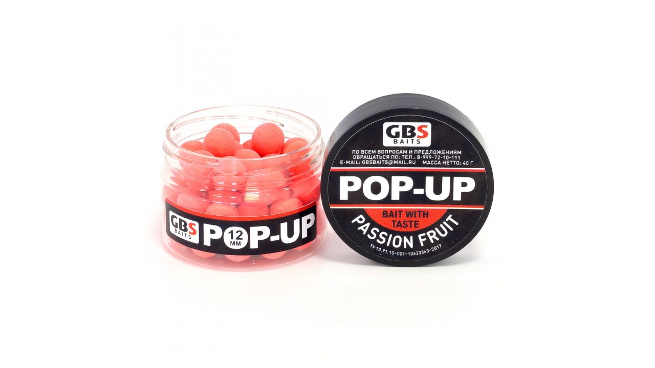 Бойлы GBS Baits Pop-up плавающие 12мм 40гр (уп. 6 шт) Passion Fruit Маракуйя