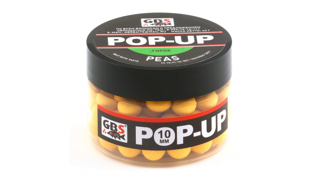 Бойлы GBS Baits Pop-up плавающие 12мм 40гр (уп. 6 шт) Peas Горох