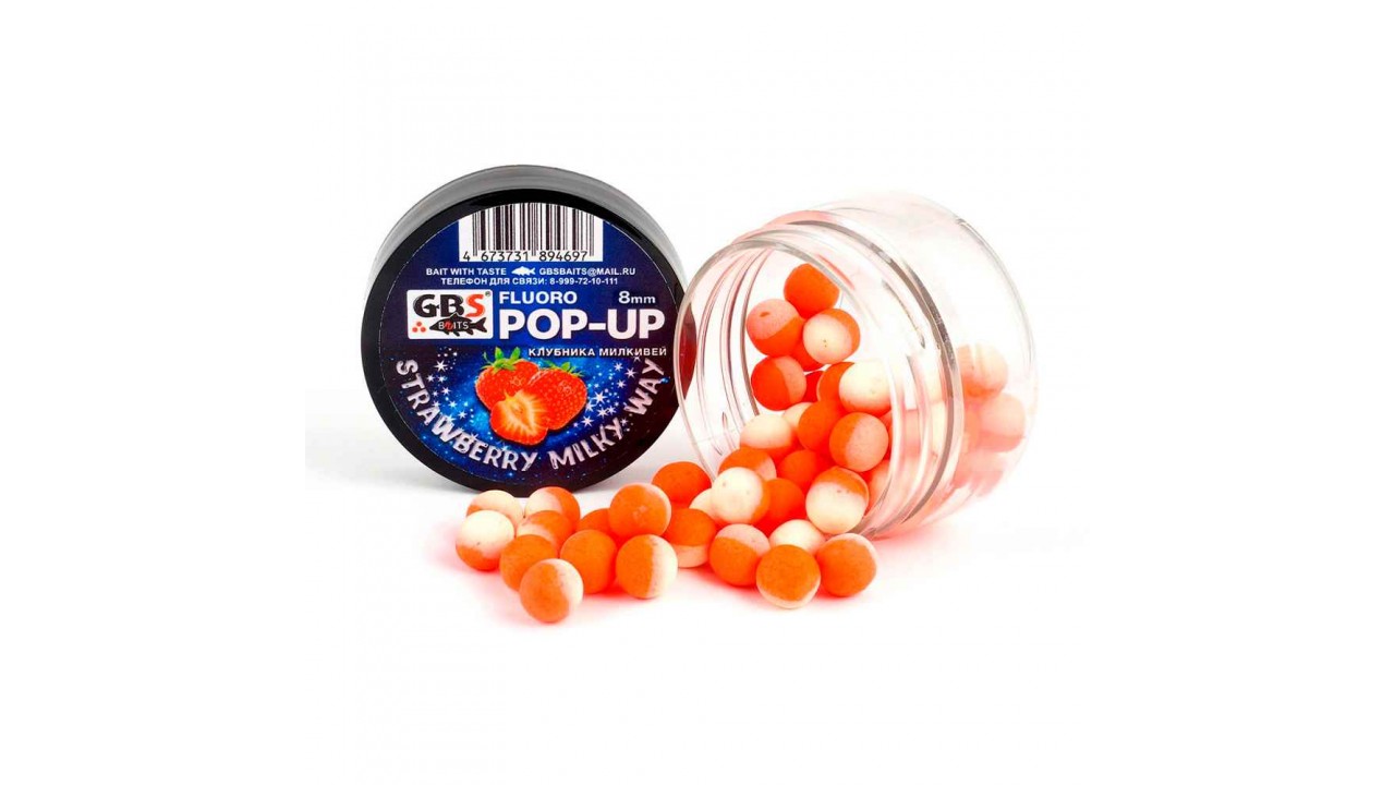 Бойлы GBS Baits Pop-up плавающие 8мм 40гр (уп. 6 шт) Milky Way-Клубника