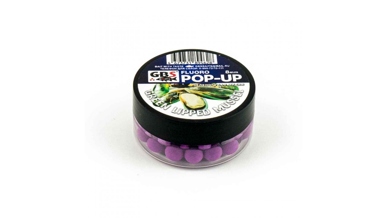 Бойлы GBS Baits Pop-up плавающие 8мм 40гр (уп. 6 шт) Зеленогубая мидия