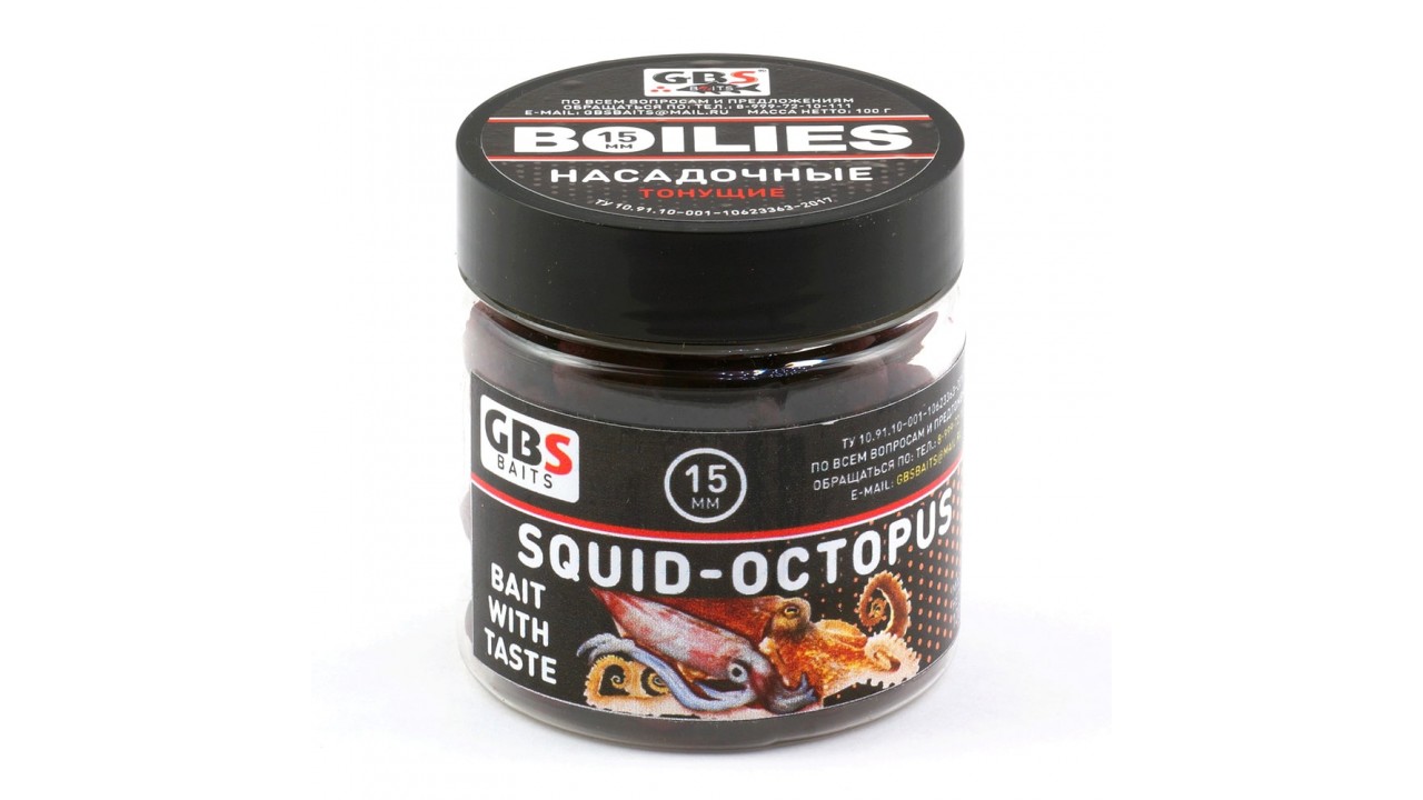 Бойлы GBS Baits тонущие насадочные 15мм 100гр Squid-Octopus Кальмар (5шт в упак)