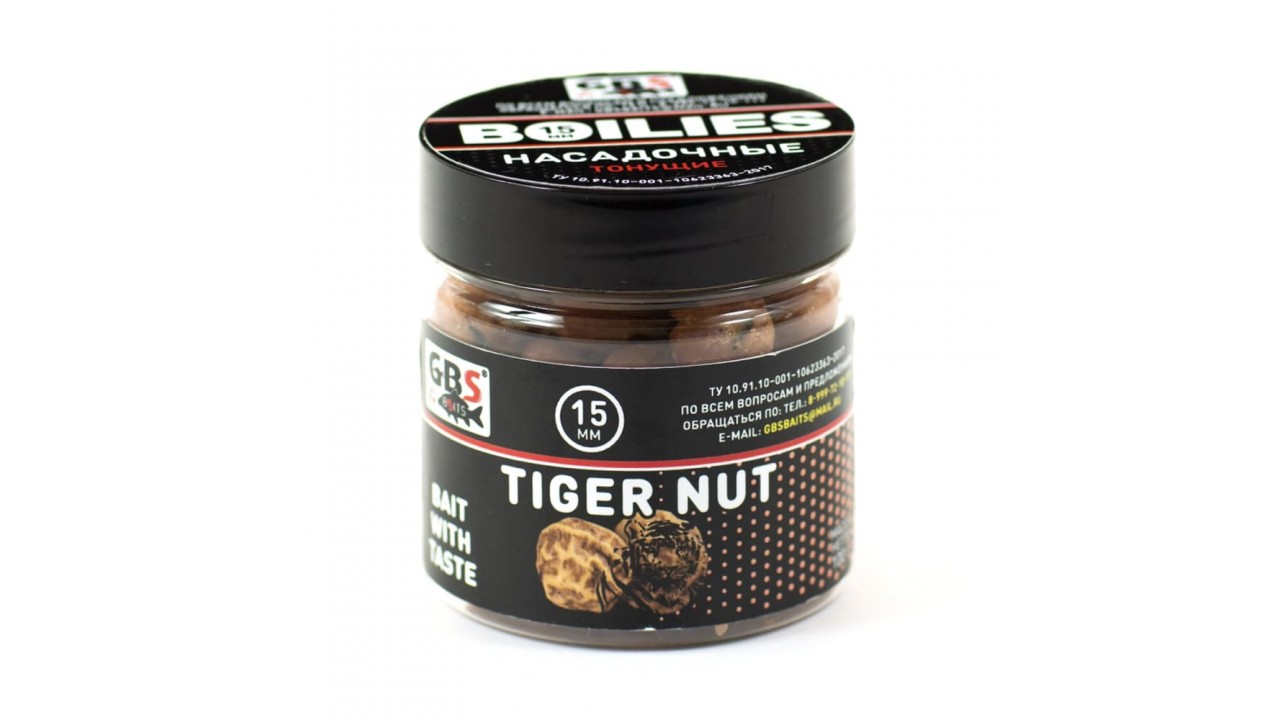 Бойлы GBS Baits тонущие насадочные 15мм 100гр Тигровый орех (5шт в упак)