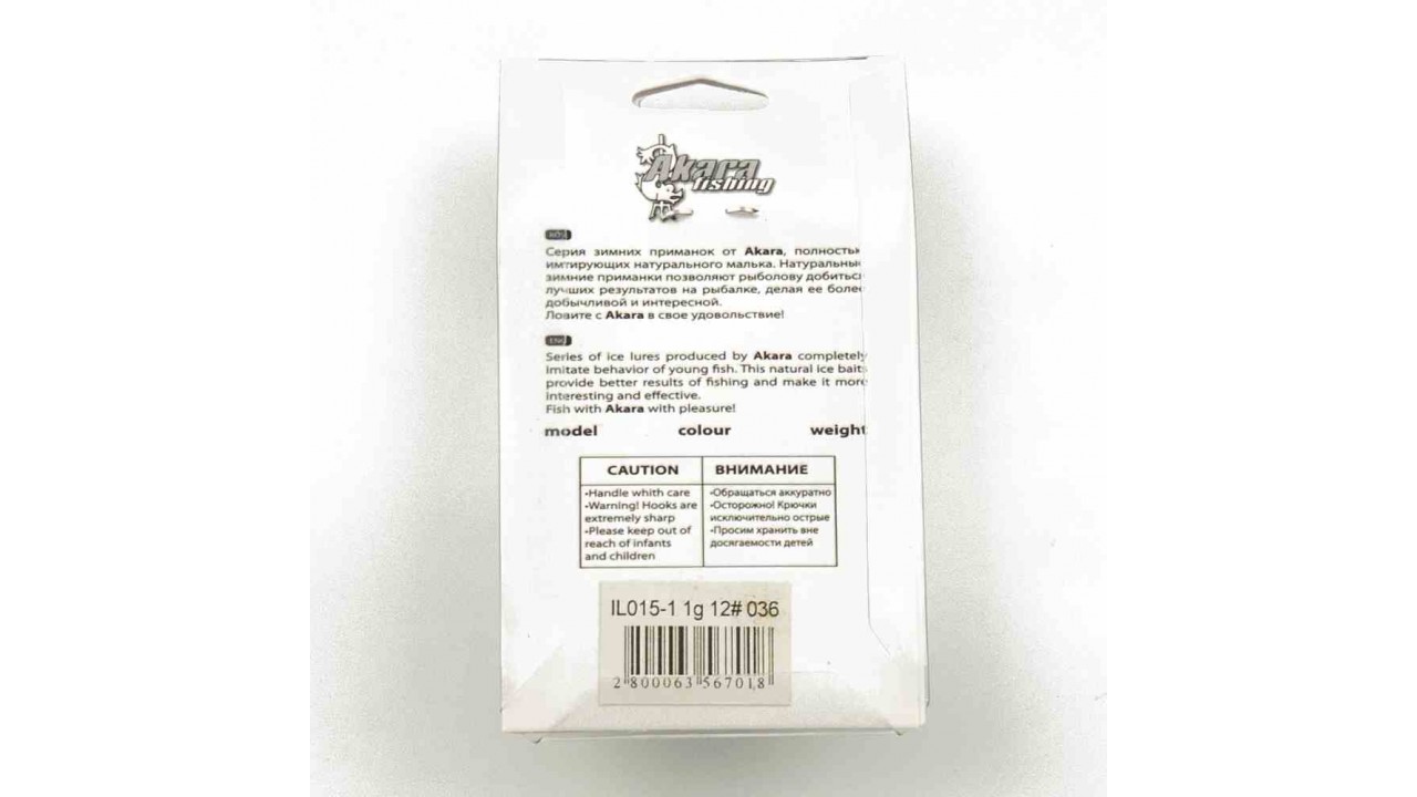 Блесна зимняя Akara Ice Lures рыбка с тройником 1гр цвет 036 (2 шт в упак)