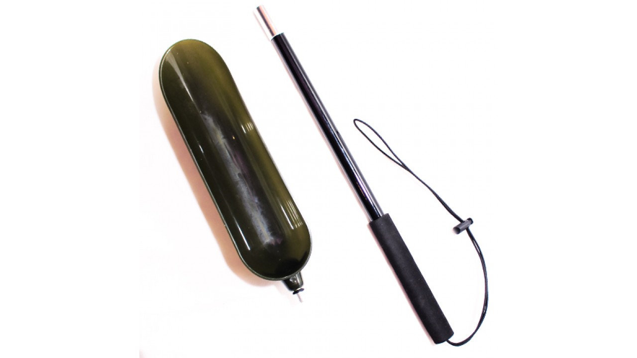 Ложку можно закрепить на ручку от подсака с подходящей резьбой и использовать как ковш для заброса прикормки разной фракции,