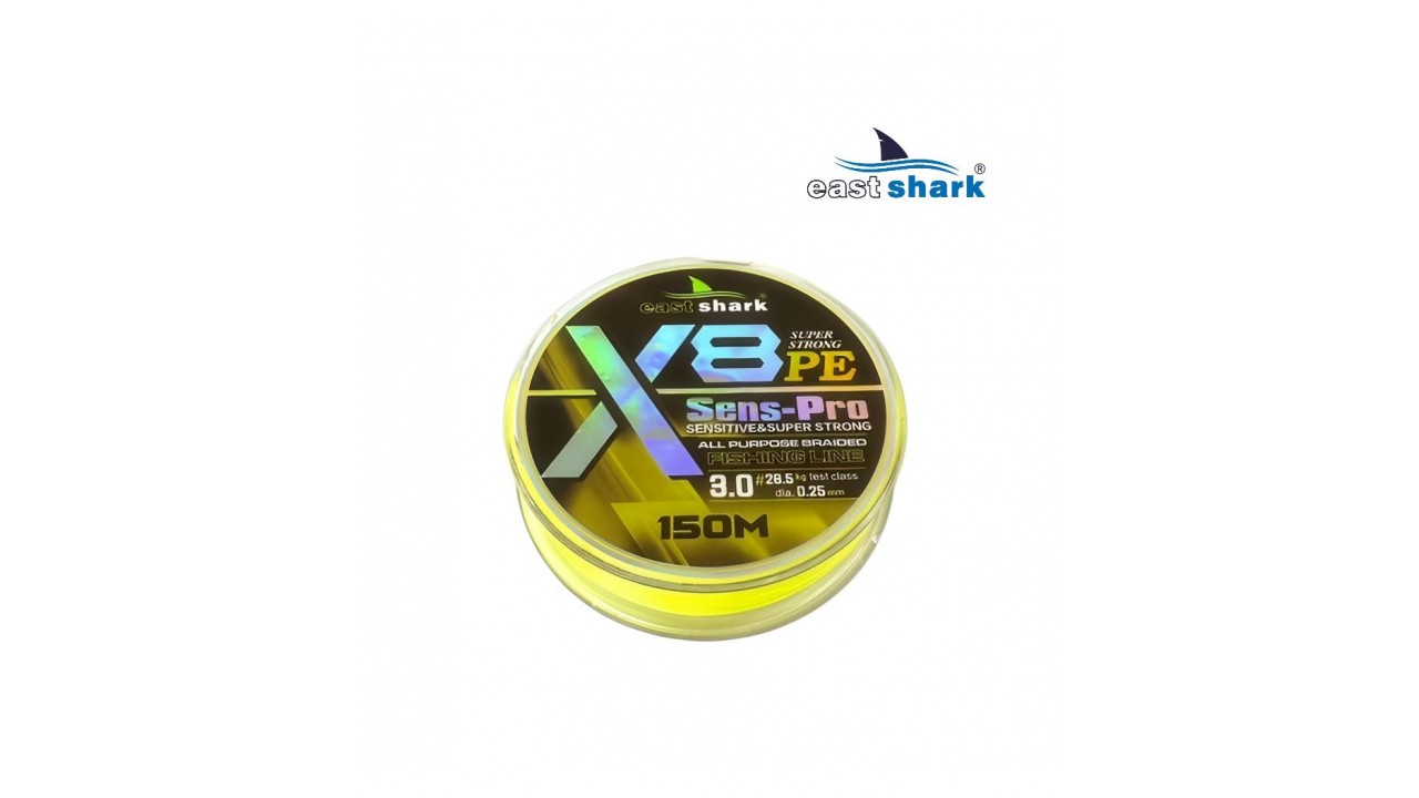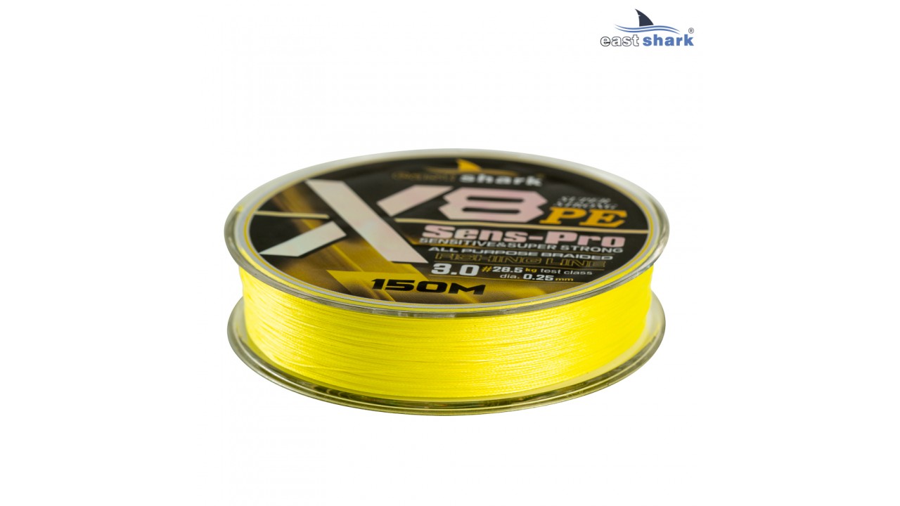 Плетёный шнур Eastshark Sens-Pro X8 — это высококачественный восьмижильный шнур, разработанный специально для профессиональных рыболовов. Его диаметр составляет от 0,08 мм до 0,30 мм , что соответствует японскому размеру #0,2-#4.0, а длина намотки — 150 метров. Шнур выполнен в желтом цвете и обеспечивает отличную заметность для визуального контроля во время ловли.