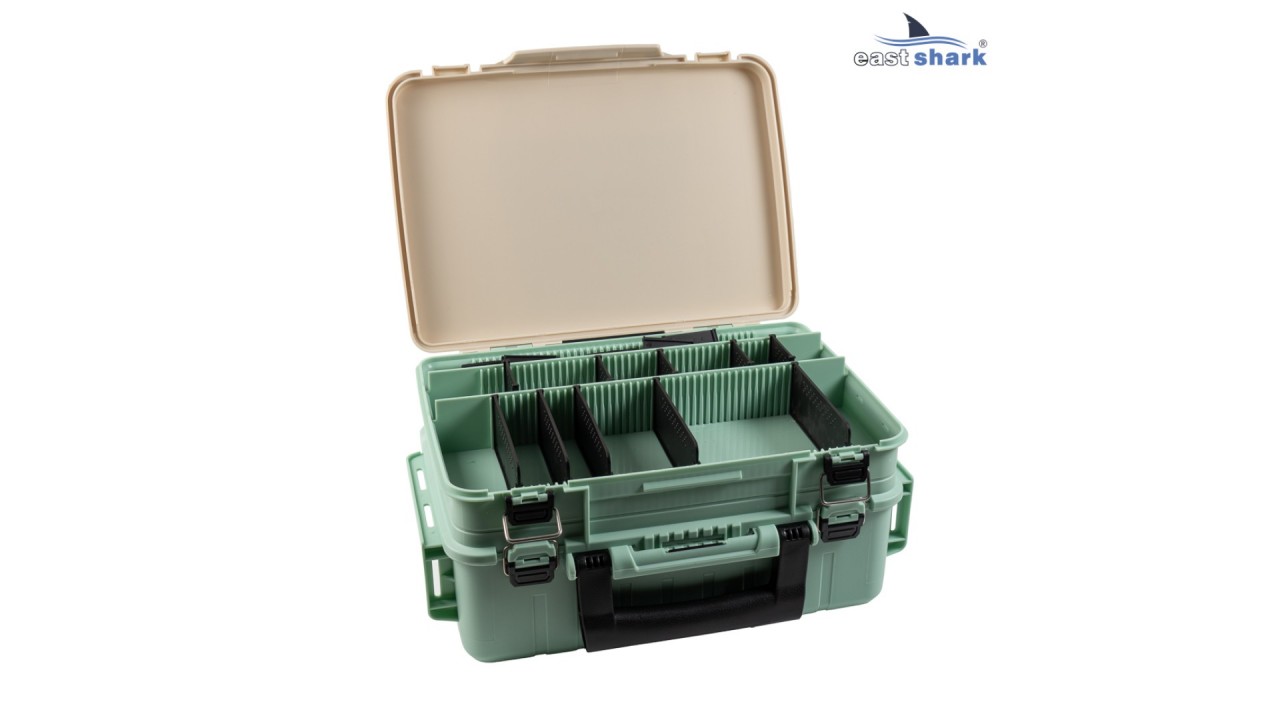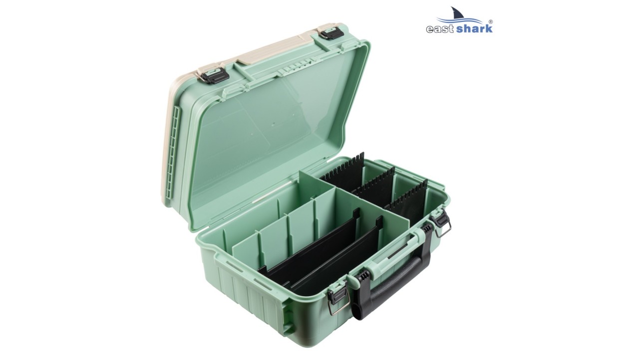 Вместительный органайзер EastShark MB-308 приспособлен для хранения рыболовных аксессуаров и приманок, воблеры и блесны можно хранить в подвешенном состоянии, есть специальный отдел.