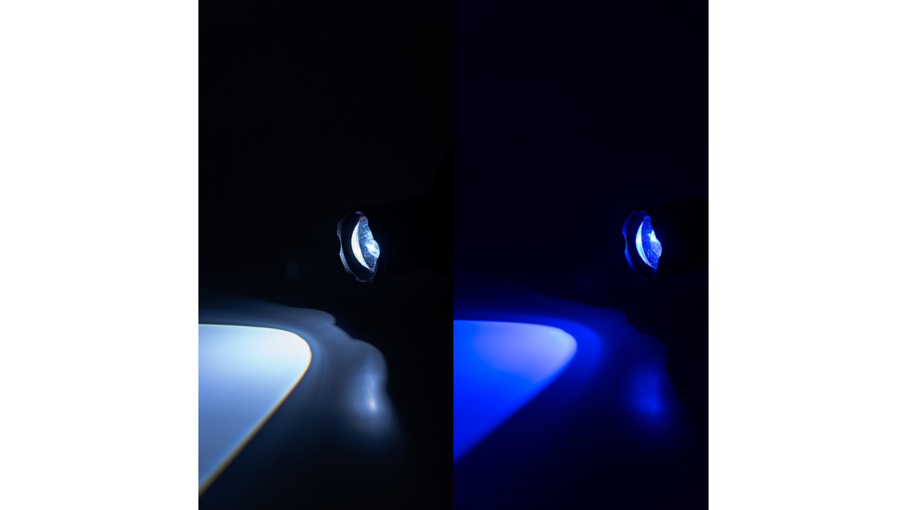 3 режима свечения, в т.ч. синий. Дальность до 1000 метров.