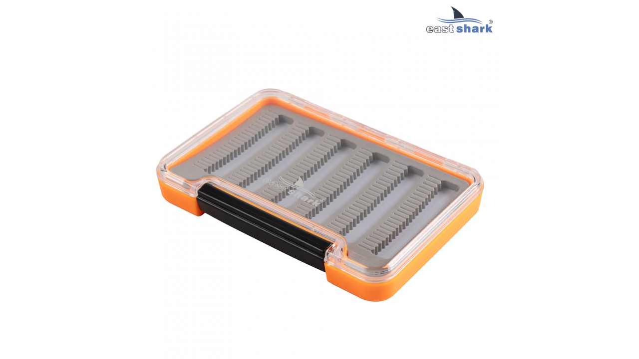 Внутри коробочки пористый вкладыш EVA с прорезями для фиксации крючков приманок.