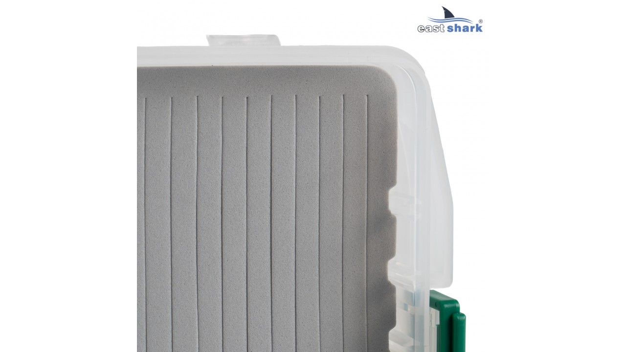 Внутри коробочки пористый вкладыш с прорезями для фиксации крючков приманок и не большой свободный отсек.
