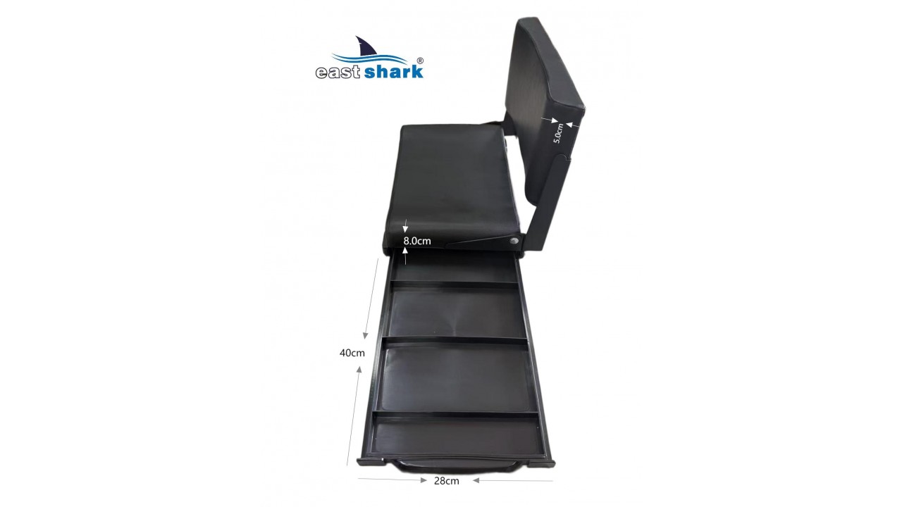 Очень удобное сидение для платформ Eastshark Кресло со складной спинкой. Сиденье упругое, с покрытием из эко-кожи. Под сиденьем имеется выдвижной, ящик для снастей.
