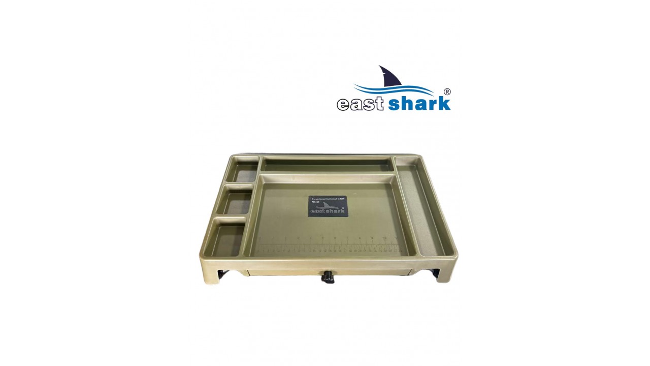 Изготовленный из высококачественного пластика, столик весит 1,8 кг и имеет 6 отсеков разной площади. Встроенный ящик-поводочница обеспечивает удобное хранение необходимых принадлежностей. Также столик оснащен лапами на ножках, что предотвращает его застревание в грязи и сыпучей почве.