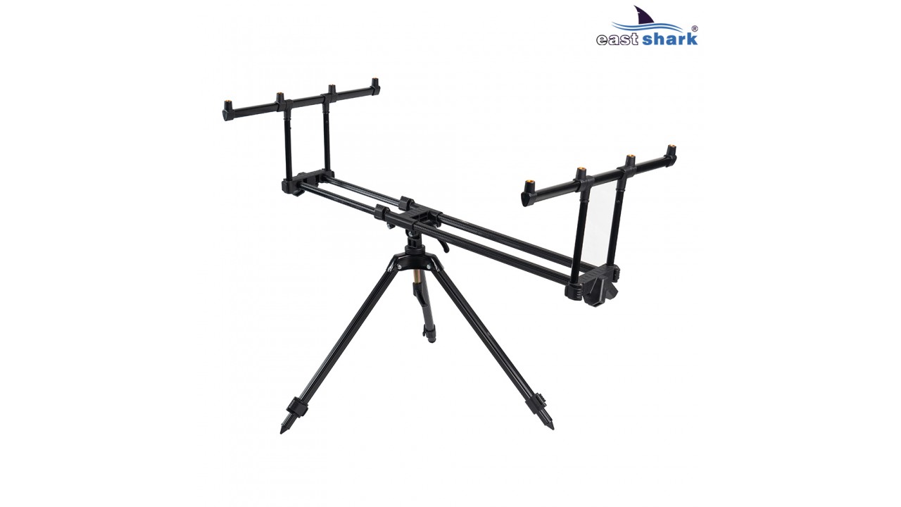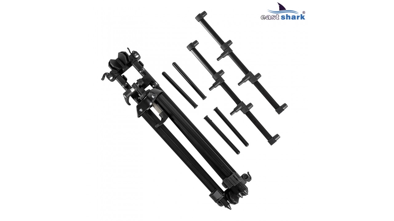 Имеет телескопические ножки с регулировкой длины, что позволяет отрегулировать высоту установки удилищ.