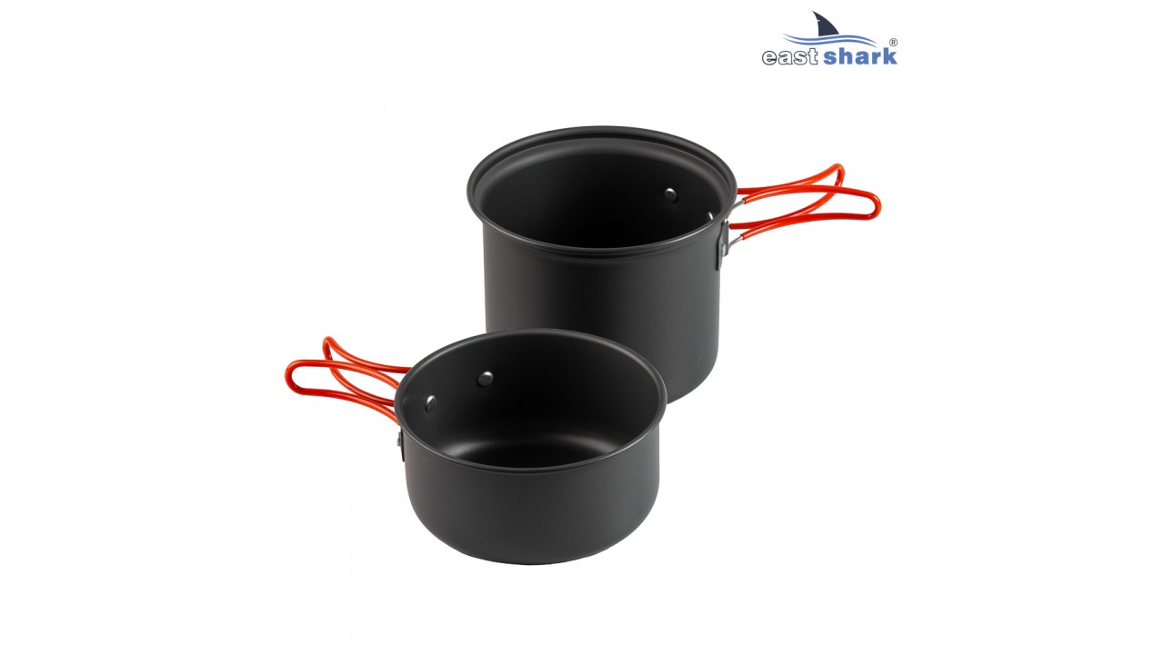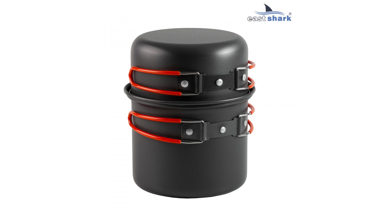 Набор туристической алюминиевой посуды с тефлоновым покрытием.