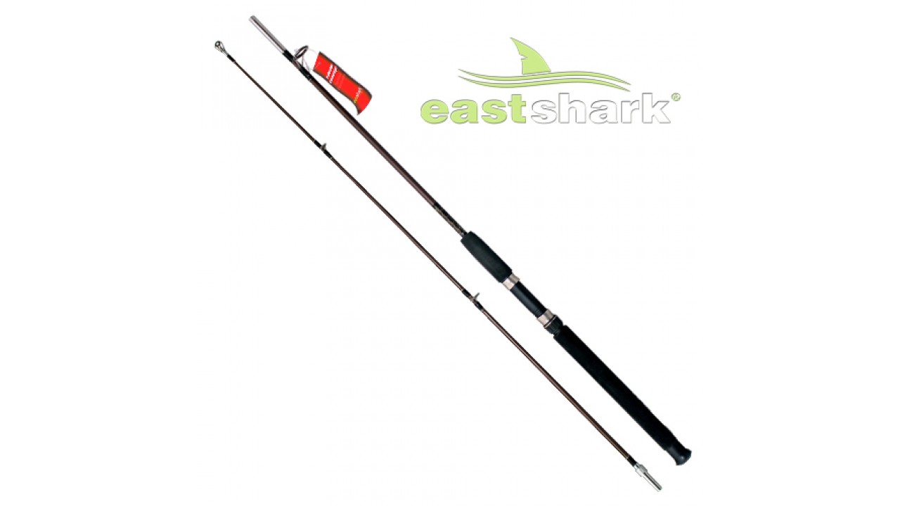 Спиннинг стеклопластиковый Восточная акула с прикручивающимся складом. Тест 100-250 грамм, длина от 1,65 до 3 метров.